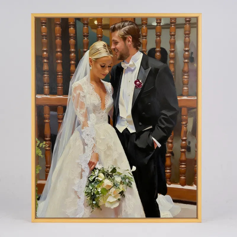 Custom Portrait from Photo - Morden Frame Wall Art - Personalized Oil, Watercolor & Sketch Style Painting - 4:5 Modern Vertical Picture Frame Decor