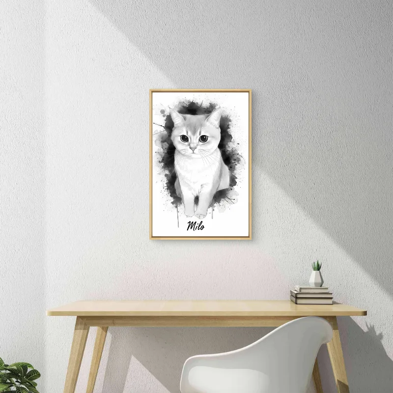 Custom Pet Cat Oil Painting Portrait in 2:3 Floating Frame, Personalized Vertical Wall Art from Photo, Large Framed Oil Painting Canvas, Modern Home Decor